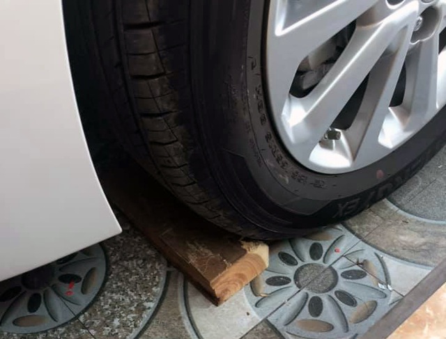 Miếng gỗ đặt dưới sàn cũng là một cách giúp căn đầu xe khi đỗ trong nhà
