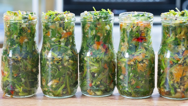 Bước 4: Sau khi trộn xong, bạn cho rau mùi vào lọ thủy tinh rồi đậy kín nắp và bảo quản trong tủ lạnh. Sau 1 ngày là bạn đã có thể thưởng thức được món ăn này.