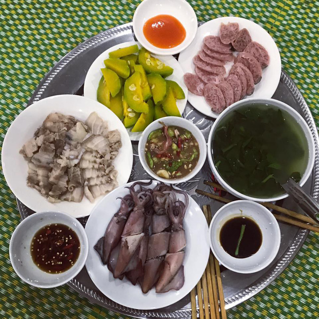 Theo quan sát thì có thể thấy mâm cơm rất hấp dẫn với đĩa thịt luộc, mực hấp, nem chua, bí đỏ luộc và cả bát canh rau mùng tơi. Mặc dù không nói rõ mâm cơm này làm cho bao nhiêu người ăn, chi phí hết bao nhiêu, nhưng các chị em vẫn rất quan tâm. Ban đầu, nhiều người xuýt xoa và khen ngợi hết lời mâm cơm đầy đặn này: