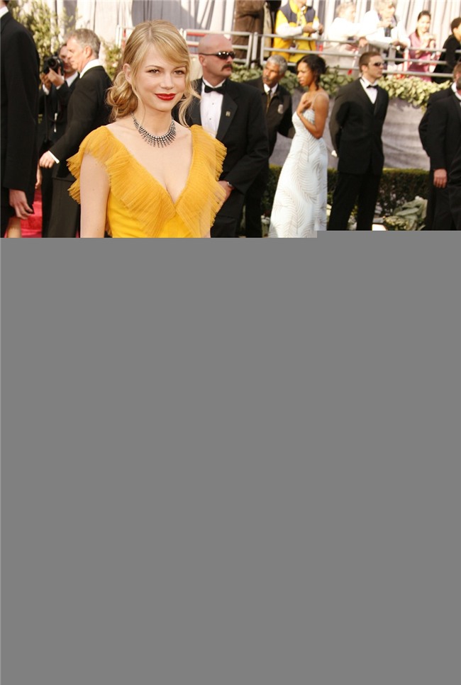 Michelle Williams nổi bật tại lễ trao giải Oscar 2006 với mẫu thiết kế của Vera Wang. Theo Vouge UK, chiếc váy này thường được mang ra làm hình mẫu cho những ai thích mặc màu sắc rực rỡ trên thảm đỏ.