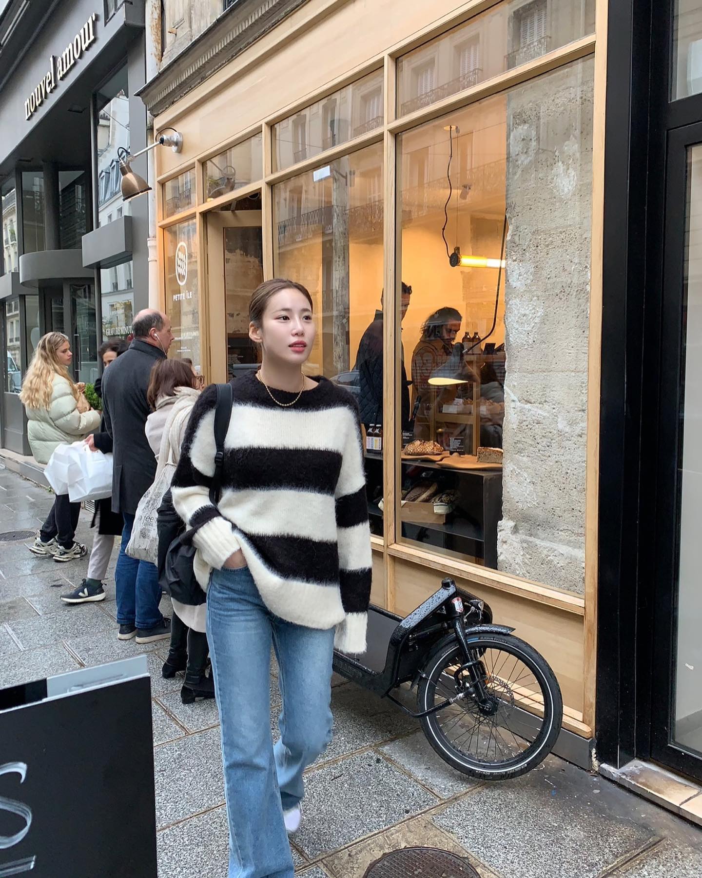 Áo len kẻ ngang rất đáng đầu tư vì nổi bật, không bao giờ lỗi mốt. Những lúc bí ý tưởng mặc đẹp, bạn hãy kết hợp kiểu áo này với quần jeans, rồi đi giày sneaker trắng. Cách mix đồ này "nhàn tênh", nhưng vẫn mang đến vẻ ấn tượng, sành điệu cho phong cách.