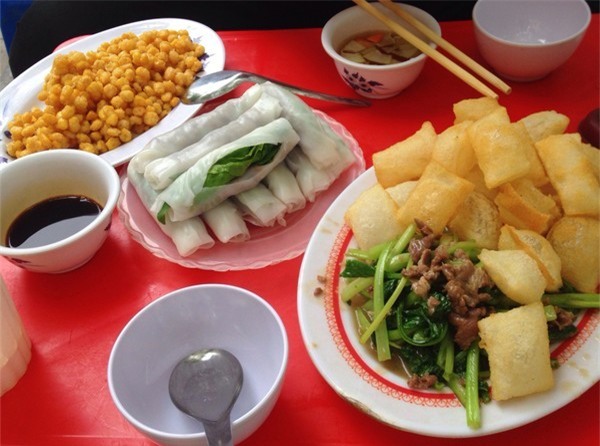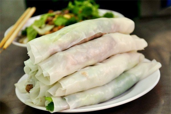 Phở cuốn ở đây được cuốn từ những bánh phở to với nhân và bò xào rồi thêm rau sống chấm với nước chấm chua ngọt. Cắn một miếng phở cuốn sẽ cảm nhận được phần nhận thịt ngọt đậm đà kết hợp với rau sống giòn giòn và phần bánh phở mềm mát rất bắt miệng.