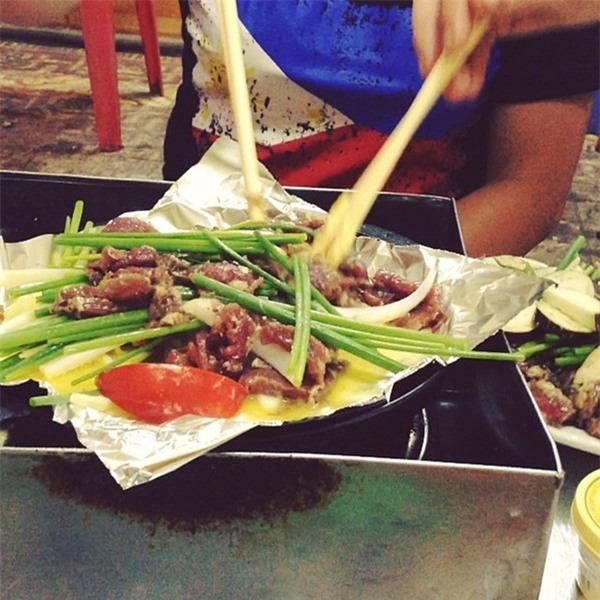 Ngoài ra nổi tiếng không kém bò, nầm nướng chính là những món lòng non, dạ dày được tẩm ướp và được nướng trước. Khi ăn bạn có thể ăn luôn hoặc nướng thêm trên bếp. Giá cả đồ nướng ở phố Gầm Cầu khá rẻ, chỉ với khoảng 80-100 ngàn đồng cho một người ăn.