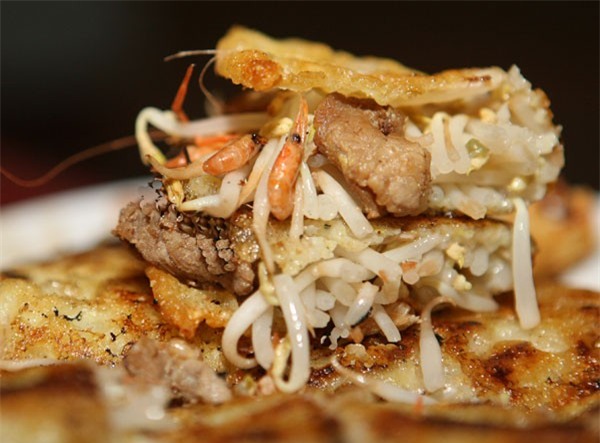 Nhắc đến bánh xèo Đội Cấn, người ta nhớ ngay đến những chiếc bánh xèo nhỏ xinh, vỏ mỏng vàng ươm và giòn tan với nhân tôm thịt cùng giá đỗ chấm cùng nước mắm chua ngọt có dưa góp làm từ đu đủ và cà rốt. Với mức giá 10 ngàn đồng/ chiếc, bánh xèo ở đây không thuộc hàng xuất sắc nhưng nếu để ăn chơi thì khá hợp lý.