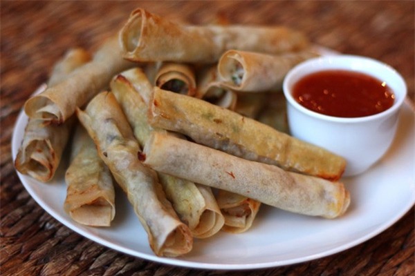 Lumpia: Món nem cuốn này thường xuất hiện ở các thành phố có người Hoa sinh sống ở Phillippines. Phần nhân gồm măng băm nhỏ trộn thịt gà hoặc tôm xay, ướp gia vị, sau đó cuộn trong bánh nem và rán giòn. Lumpia thường được ăn kèm hẹ tây hoặc tỏi tây non cùng một loại sốt làm từ tương ngọt. Đôi khi, món này được chấm với sốt sambal cay ngọt hoặc ăn với ớt tươi. Ảnh:Ubcphilippinestudies.