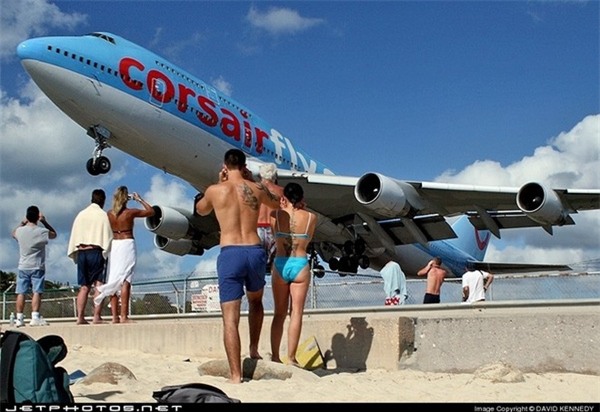 Tắm biển ở Maho, quần đảo Saint Martin thuộc vùng biển Caribe, du khách có thể chiêm ngưỡng ở cự ly rất gần một chiếc máy bay bay sát trên đầu họ để hướng tới sân bay quốc tế Princess Juliana. Cảm giác khó tả và có lẽ đôi chút sợ hãi.
