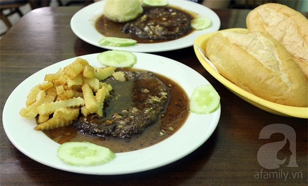 đây được phục vụ trong chiếc đĩa trắng muốt. Suất bít tết ở Hàng Bài chỉ