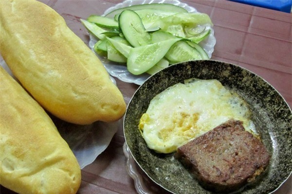 khách phải ăn chay bánh mì với trứng, pate và tương ớt nên bánh mì