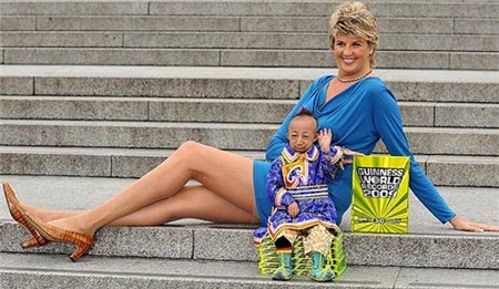 Cô gái tóc vàng có đôi chân dài nhất thế giới – Svetlana Pankratova đã có dịp tạo dáng bên người đàn ông nhỏ nhất – He Pingping trước khi ông qua đời vào năm 2010.