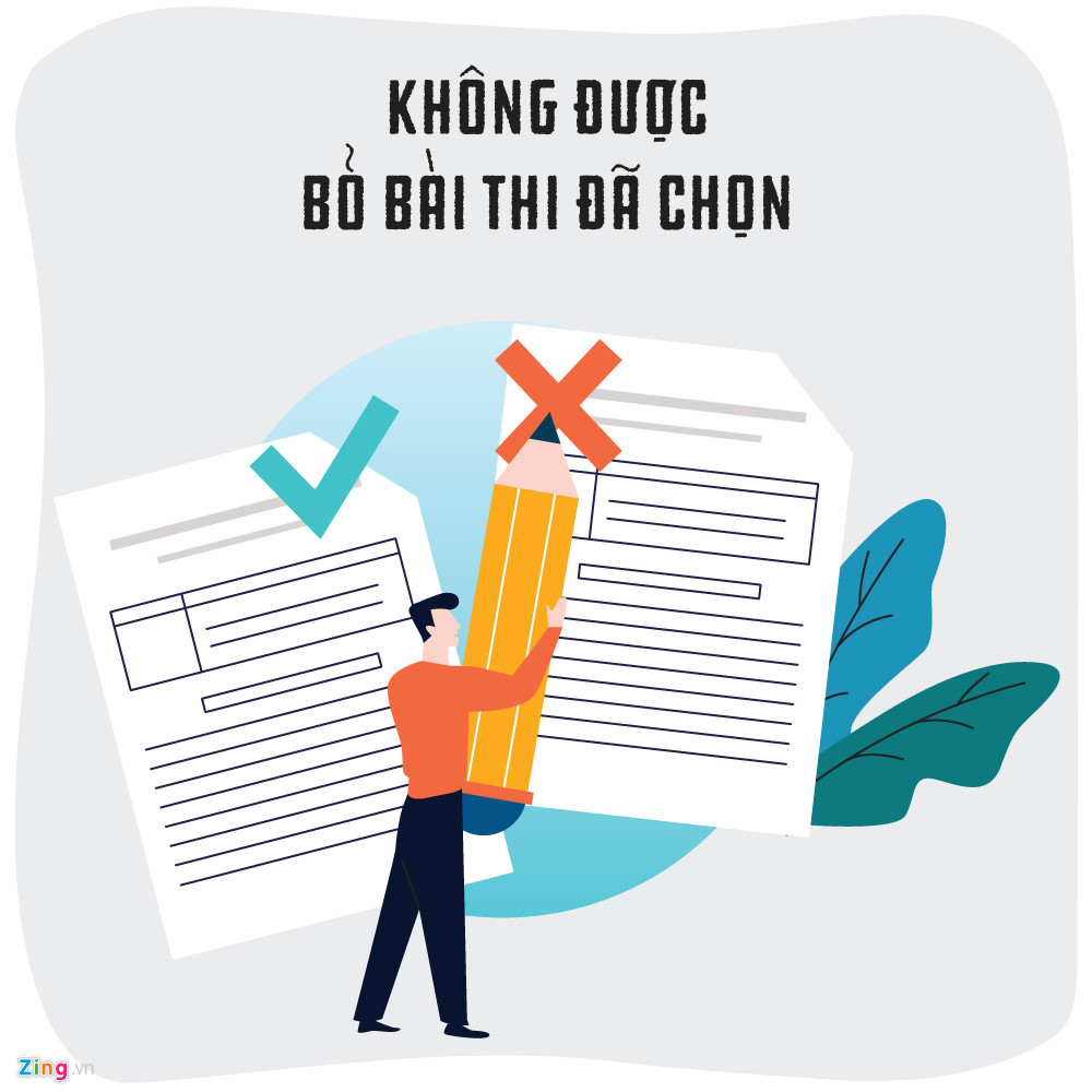 Thí sinh không được bỏ bài thi đã chọn. Nếu chọn hai bài thi tự chọn, các em phải làm đủ cả hai. Nếu bỏ một trong hai bài, thí sinh bị xem là bỏ thi, không được xét công nhận tốt nghiệp.