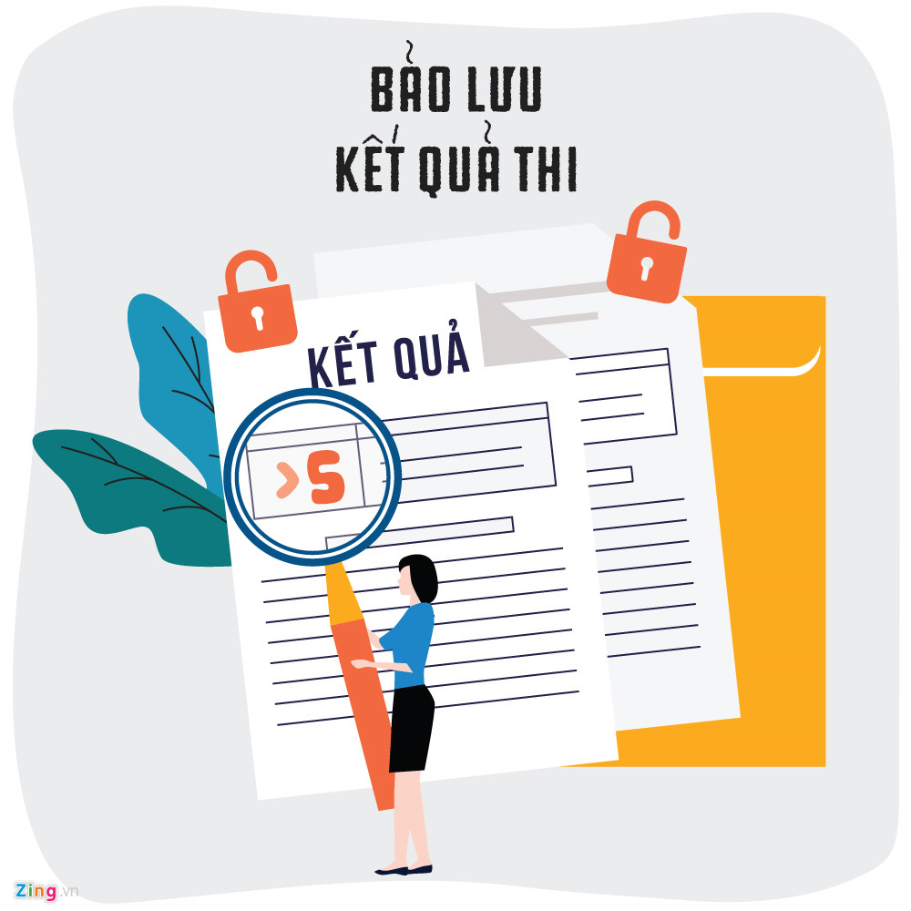Thí sinh được phép bảo lưu kết quả các môn, bài thi và môn thi thành phần của bài thi tổ hợp với điều kiện môn thi, bài thi này đạt từ 5 điểm trở lên. Để bảo lưu cả bài thi, kết quả bài thi đạt từ 5 điểm trở lên, các môn thành phần của bài thi phải có kết quả lớn hơn 1 điểm.
