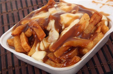 sốt thịt và pho mát cheddar. Poutine rất phổ biến ở Canada, thậm chí còn