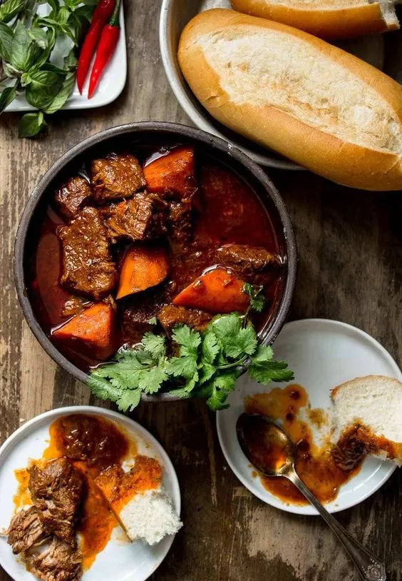Nếu là người ưa hương vị hơi cay của ớt thì nhất định nên thử món bò kho sả ớt. Với thịt bò thái con chì được kho chín nhừ ăn cùng măng có mùi thơm của sả, vị hơi cay của ớt sẽ khiến bạn khó lòng từ chối. Món ăn này khi ăn kèm cơm nóng thì dự sẽ đánh bay nồi cơm của gia đình bạn trong phút chốc. Hãy thử ngay nhé.