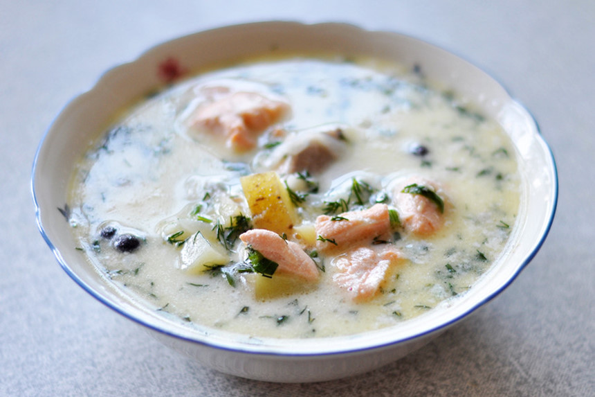 Súp cá Karelian: Ẩm thực Karelian ở Nga, nổi bật với những món ăn được chế biến từ cá. Trong đó có các món súp như súp cá trắng có tên gọi là kalakeitto, súp lohikeitto với kem và cá hồi thường được phục vụ trong các bữa tiệc hay món súp lohikeitto đơn giản, dễ làm. Ảnh: Daria Sokolova.