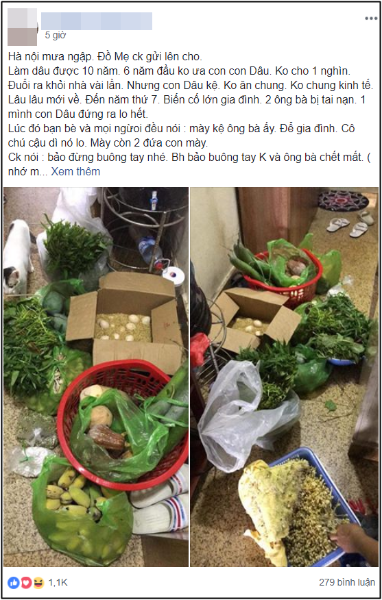 "Hà Nội mưa lớn, ngập lụt và đây là đồ mẹ chồng gửi lên cho.