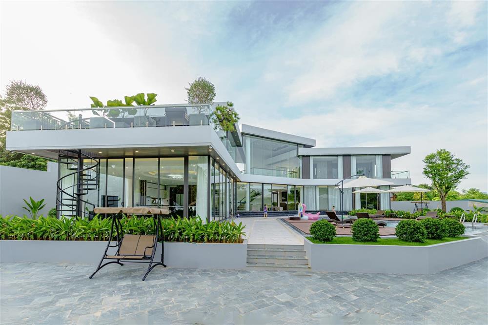 Căn villa mang hình tượng cánh chim bay cao, bay xa và luôn hướng về phía trước. Xung quanh cảnh quan thiên nhiên xanh ngắt.