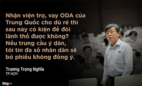 Lo lắng trước tình hình Biển Đông, trong chất vấn gửi tới Thủ tướng, đại biểu Trương Trọng Nghĩa đề nghị không nhận viện trợ và vay tiền từ Trung Quốc.