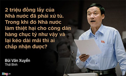 Tranh luận với Chánh án TAND Tối cao về vụ bồi thường án oan sai lớn nhất Việt Nam, đại biểu Bùi Văn Xuyền cho rằng, người dân đã quá mệt mỏi, quá sức chịu đựng. Bồi thường bao nhiêu tính rõ, không thể giằng co mãi.