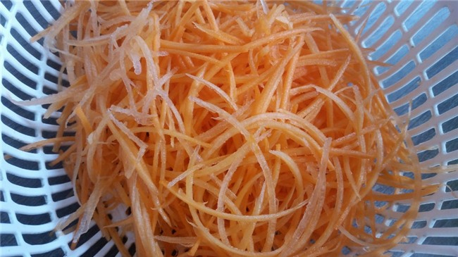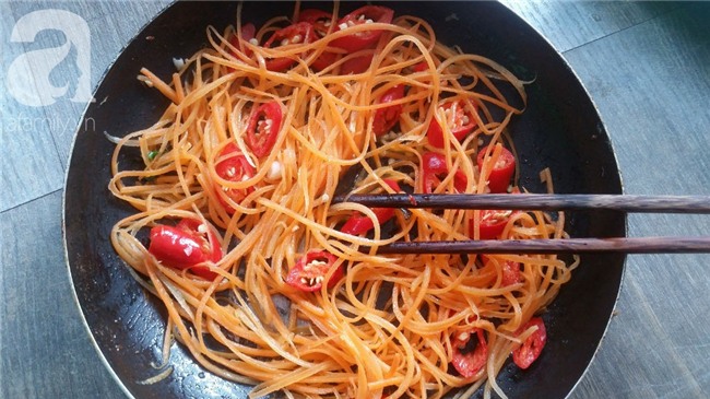 Cà rốt gọt vỏ, rửa sạch rồi nạo sơi dài.