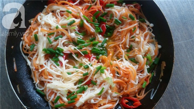Món nấm kim châm xào sa tế cay ngon cực lạ miệng