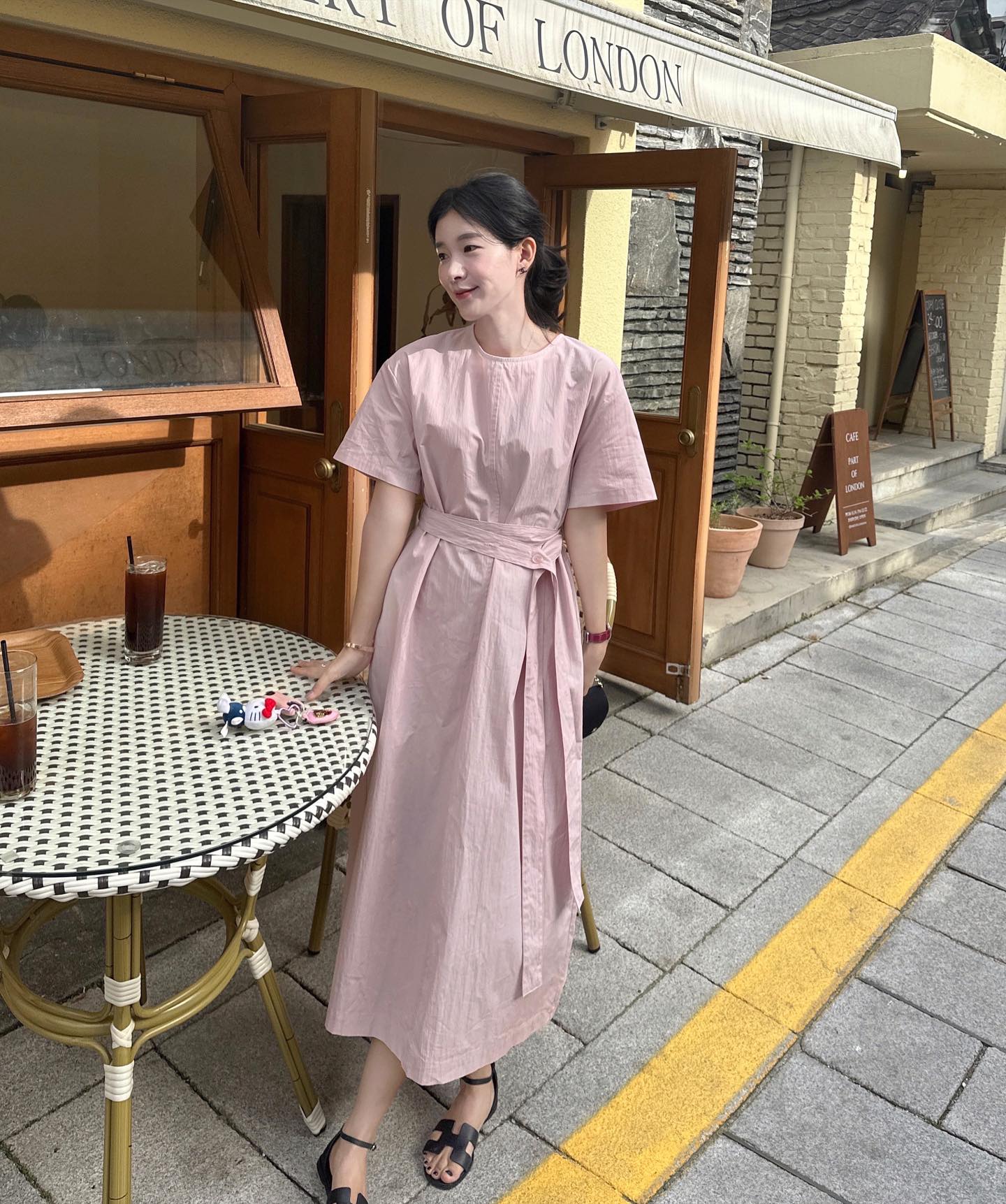 Váy liền chất liệu vải thô đũi luôn được yêu thích trong mùa hè vì độ nhẹ mát, thoải mái. Thiết kế váy tông màu hồng pastel trên đây có sự trang nhã, rất phù hợp với môi trường công sở. Để tăng thêm sự chỉn chu, thanh lịch cho bộ đồ, chị em nên tô điểm đường nhấn eo, đi sandal có quai hậu.