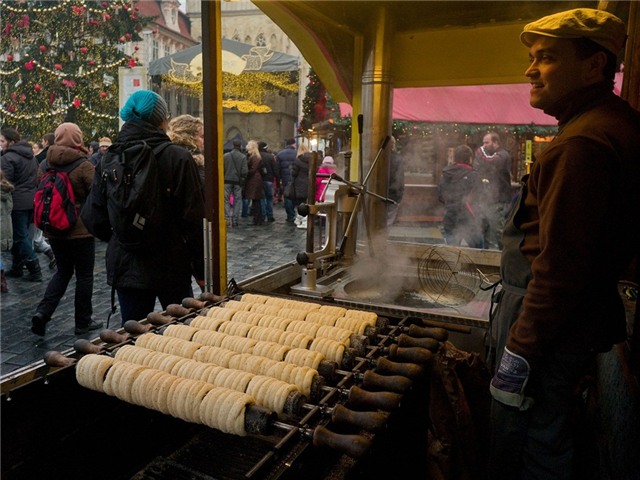 trdelnik, một loại bánh ngọt nướng hình tròn nướng trên lửa cũng là một