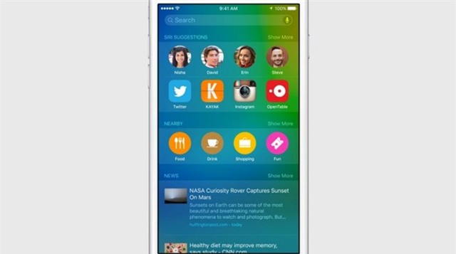 Hệ thống thông báo và tìm kiếm trên iOS 9 thông minh, dễ sử dụng hơn. Spotlight sẽ gợi ý các ứng dụng, danh bạ mở gần đây hoặc điểm đến ưa thích trước khi người dùng muốn tìm kiếm nó. Google Now cung cấp tính năng gợi ý địa điểm hơn 2 năm trước. Nó thậm chí sẵn sàng chỉ đường và tính toán thời gian đến địa điểm đó.