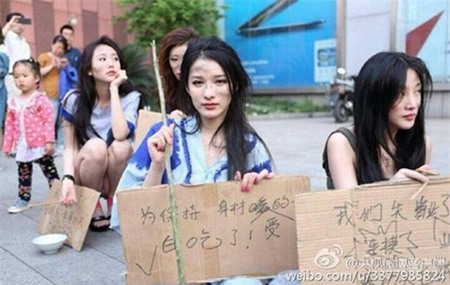 Trước luật cấm thuê người mẫu sexy tới dự triển lãm xe hơi Thượng Hải tháng 4 vừa qua, rất nhiều chân dài đến từ thành phố này đã xuống phố biểu tình. Để tạo nên hiệu ứng với dư luận, họ đã chọn cách ăn mặc rách rưới, đeo bị gậy, cầm bát, đóng giả làm ăn mày trên phố.