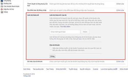 Chỉ cần vào trang Cài đặt bảo mật -> Liên hệ thừa kế rồi chọn một tài khoản Facebook sẽ "thừa hưởng" quyền quản lý tài khoản của họ. Người được ủy quyền phải chứng minh được rằng chủ tài khoản Facebook của người cho phép đã chết rồi thì mới "nắm giữ" tài khoản ấy được. Ngoài ra, quyền quản lý tài khoản Facebook của người đã chết từ người được ủy quyền cũng bị hạn chế.