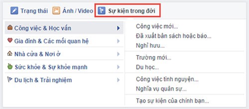 Trên khung cập nhật trạng thái, chọn Sự kiện trong đời, sau đó lựa chọn một sự kiện nổi bật nào đó trong quá khứ mà bạn muốn chia sẻ cho mọi người cùng biết.