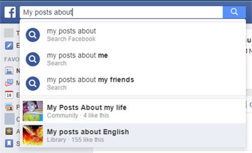 Bên cạnh tính năng tìm kiếm thông thường, Facebook Graph Search còn có nhiều tính năng tìm kiếm hữu ích khác. Hãy thử nhập một cụm từ kiểu như my posts about …,rồi nhấp nút tìm kiếm, sẽ có nhiều thứ hay ho đang chờ bạn. Thử một cụm từ khác xem: TV shows liked by people who work at [một địa điểm bất kỳ], bạn sẽ thấy Facebook Graph Search cực hữu ích. Lưu ý là tính năng Graph Search chỉ có trong Facebook tiếng Anh (US).