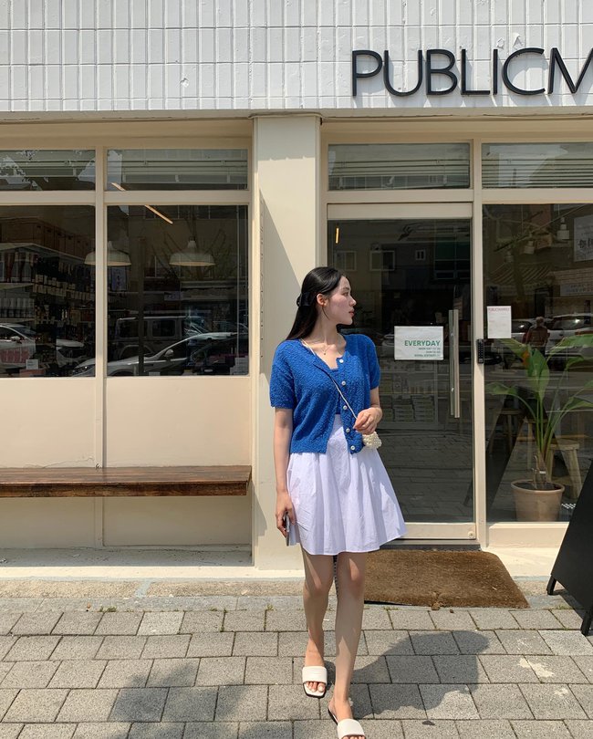 Dịu dàng, nữ tính nhưng không kém phần nổi bật chính là combo áo len cộc tay kết hợp với chân váy trắng, dáng xòe. Chưa hết, cách mix đồ này còn giúp người diện trông cao ráo hơn.