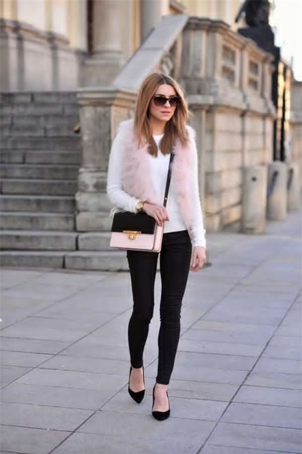 10. Những cô nàng lãng mạn không thể bỏ qua chiếc áo gile lông màu hồng ngọt ngào đầy nữ tính. Với kiểu áo này bạn hãy mix cùng set đồ đơn giản như áo len, quần jean và giày cao gót.