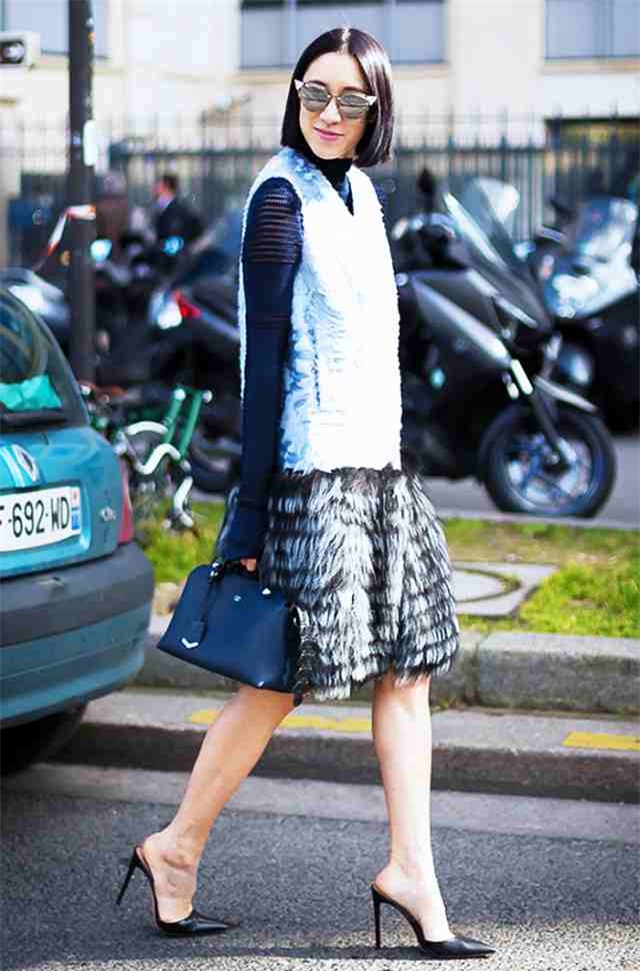 8. Vì khi bạn đang tham dự một sự kiện chính thức, một chiếc áo lông vest gile là sẽ giúp bạn nổi bật hơn. Mix chiếc áo lông thú với một bộ jumpsuit đơn sắc hoặc quần âu tối màu.