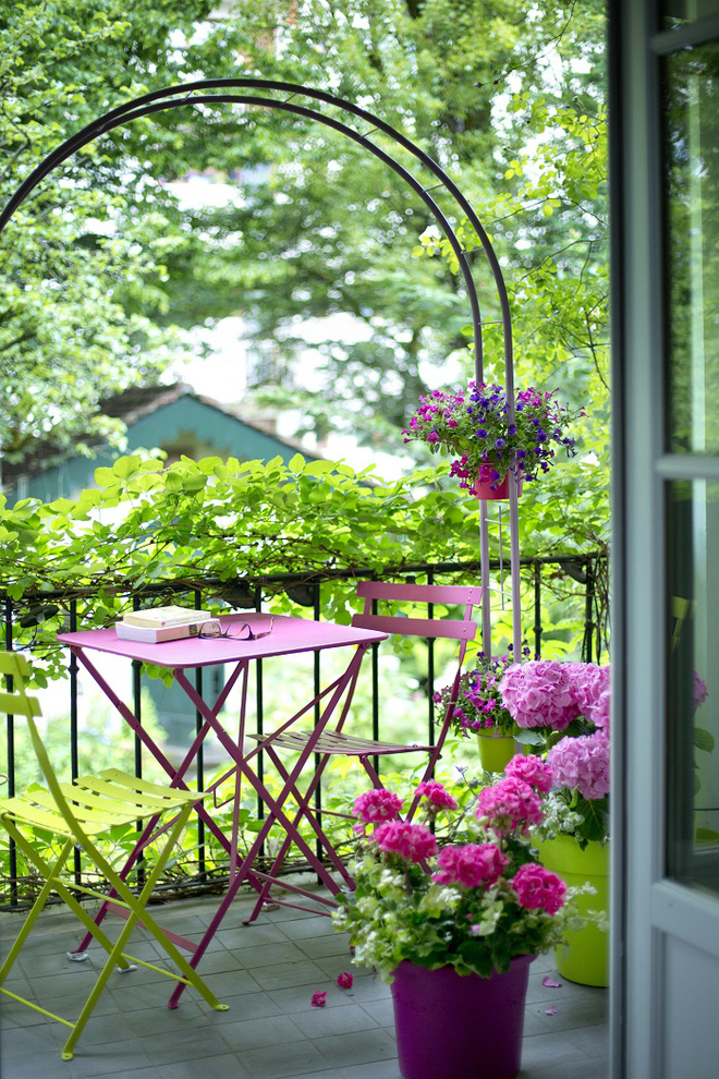 1. Ban công luôn là một nơi lý tưởng để trồng và đặt các loài hoa. Một chút bàn và ghế nhỏ với tách uống trà sẽ là không gian thư giãn, nghỉ ngơi lý tưởng của những gia chủ yêu thích sự thư giãn.