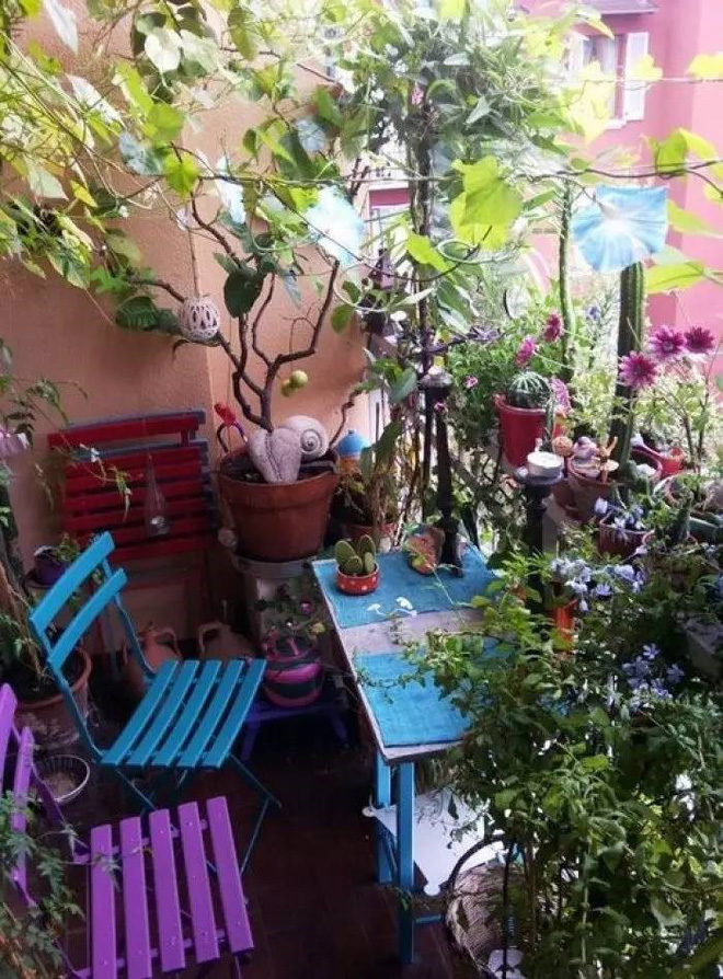 2.Nếu không thì bạn cũng có thể sử dụng làm nơi thư giãn bằng các chậu cây hoa lá cành rậm rạp như khu rừng trong tiểu thuyết như thế này.