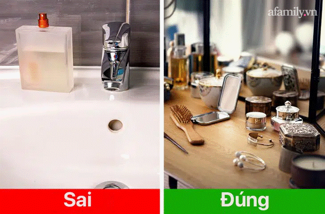 Nước hoa cũng là sản phẩm phổ biến được đặt trong phòng tắm vì thói quen sử dụng hàng ngày. Tuy nhiên, chúng lại không phải là nơi phù hợp vì ảnh hưởng lớn đến chất lượng của nước hoa cũng như khiến mùi hương không còn đặc trưng.