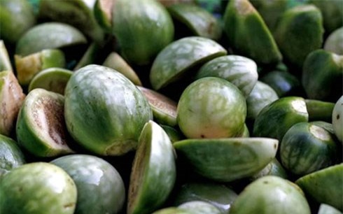 Cà đắng là một loại cà dại mọc nhiều trên rừng, trên nương rẫy, hiện nay đã được người dân khu vực Tây Nguyên trồng trong vườn nhà, ra quả quanh năm, trái cà dài, to hơn cà pháo của người Kinh, có gai, màu xanh sọc đốm trắng, đặc biệt có vị đắng rất đặc trưng.