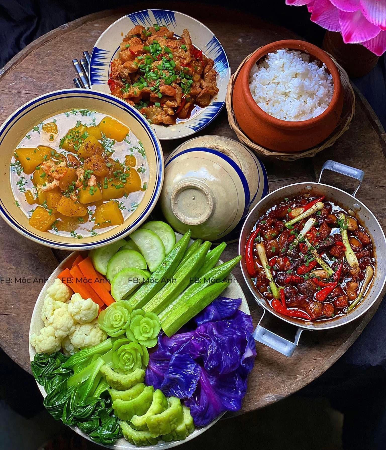 Mâm cơm mùa thu giản dị mà trọn vị.