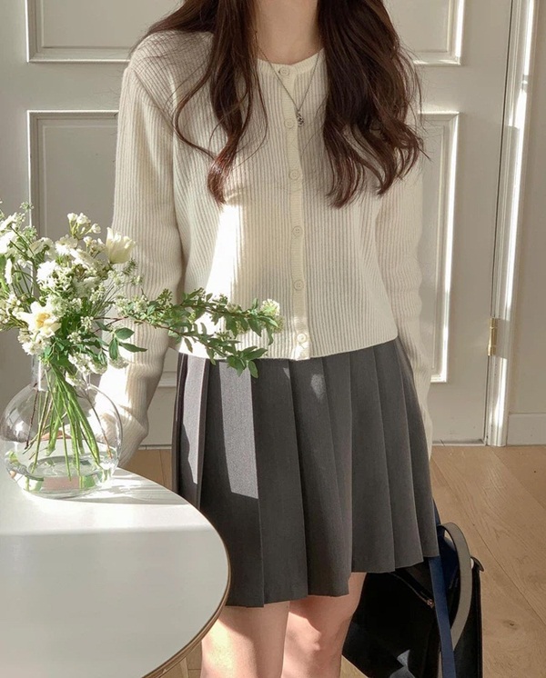 Set đồ gồm cardigan + chân váy ngắn này cực kỳ đơn giản, lên đồ nhàn tênh nhưng độ trẻ trung, sành điệu là khó phủ nhận.