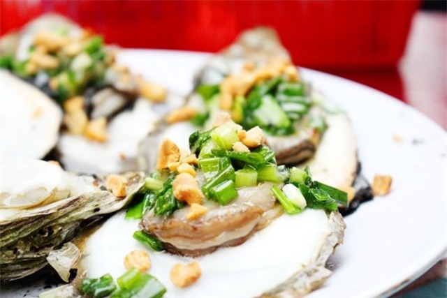 Hàu nướng mỡ hành phổ biến với vị thơm, béo của mỡ hành, đậu phộng.
