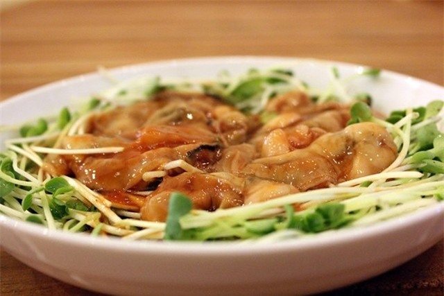 Hàu sống chấm mù tạt: Món này được yêu thích do giữ được hương vị nguyên thủy của nguyên liệu. Tuy nhiên, không phải ai cũng đều có can đảm thưởng thức hàu sống. Ảnh: Hoàng Nhi.