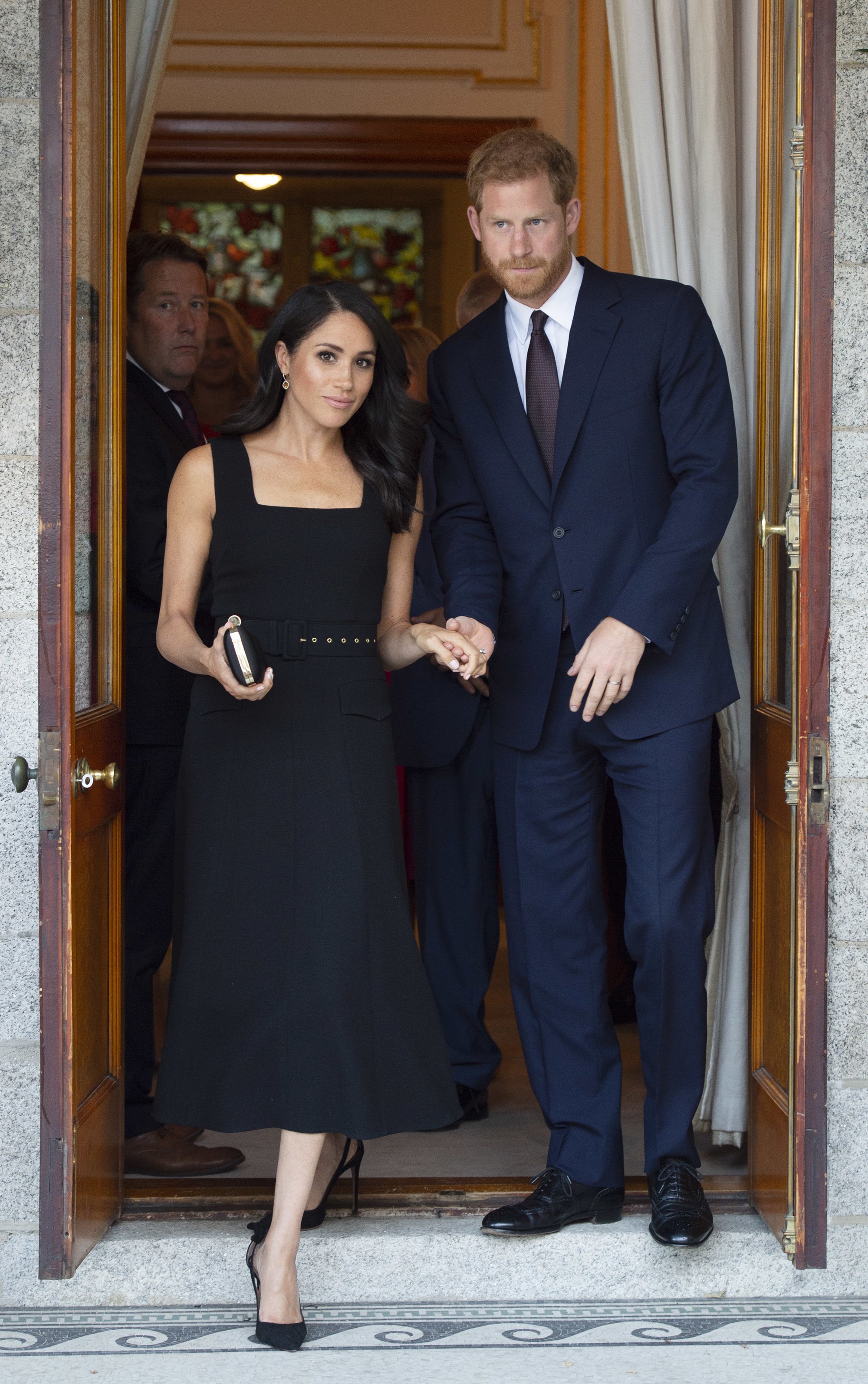 Meghan Markle cho thấy khí chất Hoàng gia sang trọng của mình khi diện đầm đen thắt đai của Emilia Wickstead. Mái tóc xõa nhẹ nhàng cùng phần tà váy mềm mại giúp diện mạo của Công nương thêm duyên dáng, nữ tính hơn bội phần.