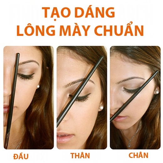 Bạn xác định 3 điểm: đầu, thân và chân lông mày như hình rồi tiến hành kẻ theo các điểm đã xác định. Tất cả những gì bạn làm chỉ là vẽ 2 đường thẳng đơn giản để tạo ra được một dáng lông mày “chuẩn không cần chỉnh”.