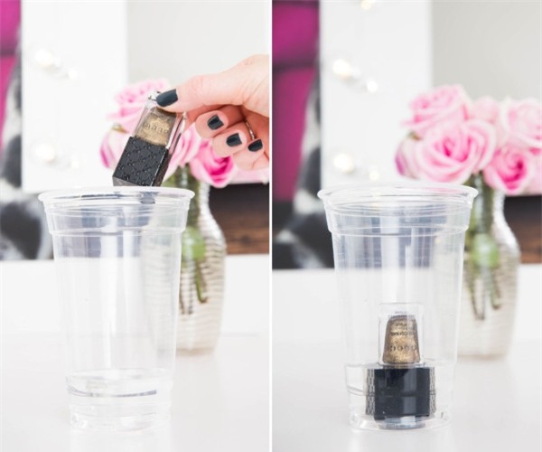 Nếu phát hiện lọ sơn móng tay của bạn bị khô và kết dính bên trong, đừng vội vứt đi. Hãy vặn nắp lọ thật chặt rồi đặt vào một bát nước ấm. Sau 2 đến 3 phút, lớp sơn bị khô sẽ mềm mại và sánh quyện như vừa mới mua.