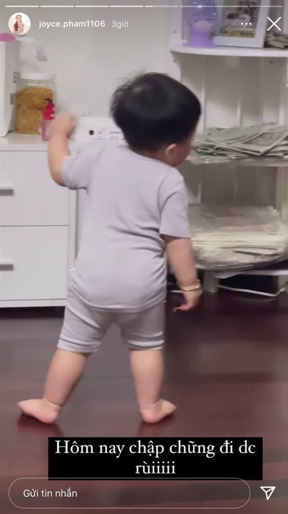 Những bước đi đáng nhớ đầu đời của con trai được vợ chồng Joyce Phạm chia sẻ trên MXH.