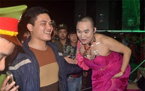 Dù đây không phải là lần đầu tiên Xuân Hinh giả gái nhưng danh hài vẫn khiến khán giả phải bật cười vì tạo hình của mình trong chiếc váy hồng hở vai cùng kiểu đầu trọc lóc. Lúc danh hài bước xuống cánh gà để thay đồ, khán giả nơi đây đã vây quanh khiến sân khấu náo loạn.