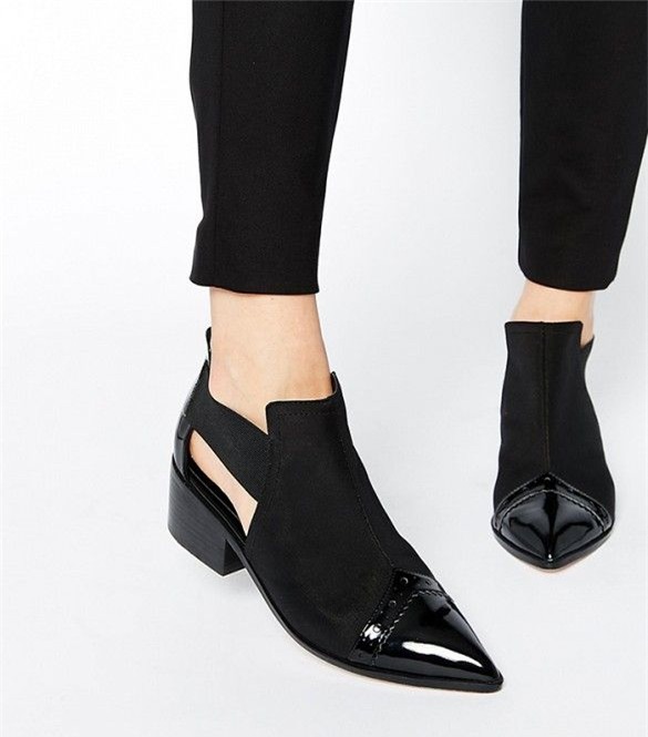 đi kèm phụ kiện màu nổi như một đôi giày bốt màu đỏ da bóng hay một đôi