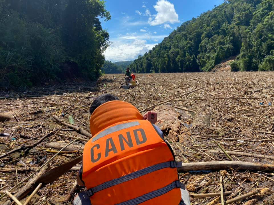 Lòng hồ thủy điện Sông Tranh 2 bị bao phủ nhiều lớp rác, cây cối