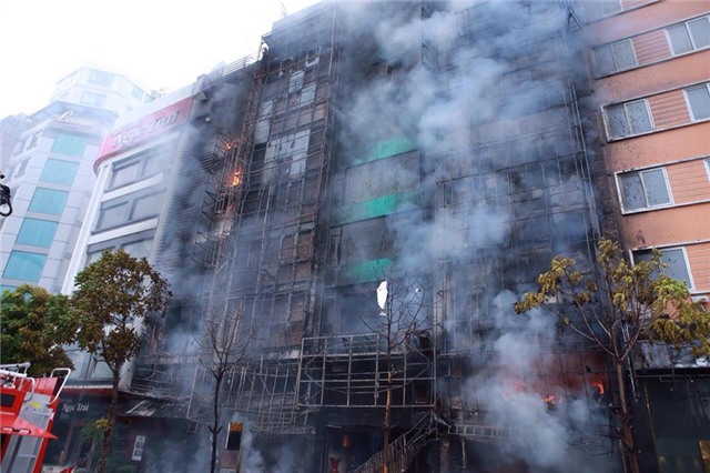 Đến 15h45, lửa trong quán karaoke cơ bản được dập tắt. Nhưng do mặt trước nhà bị bịt kín, khó thoát nhiệt nên sau 15 phút, đám cháy bùng phát trở lại ở tầng 6. Cảnh sát đã huy động nhiều mũi phá dỡ cấu kiện các tầng 7, 8 và 9 để thoát khói, phun nước làm mát, đến 18h, đám cháy được dập tắt hoàn toàn.
